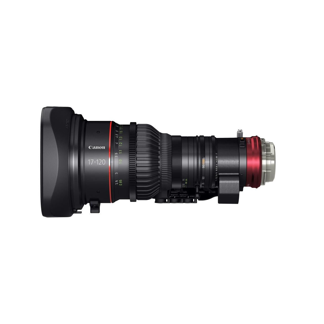 The Canon Cine-Servo 17-120mm T2.95 with PL mount is designed to combine the functionality and form factor of a broadcast, ENG-style motorized zoom lens with the optical precision of a cinema zoom. The lens is designed for use on cinema cameras with sensors up to Super 35mm (26.2 x 13.8mm) in size and is suitable for 4K acquisition. With a detachable drive mechanism and support for rod attachment, it is designed to be equally at home whether being used by a solo camera operator or a full production team.