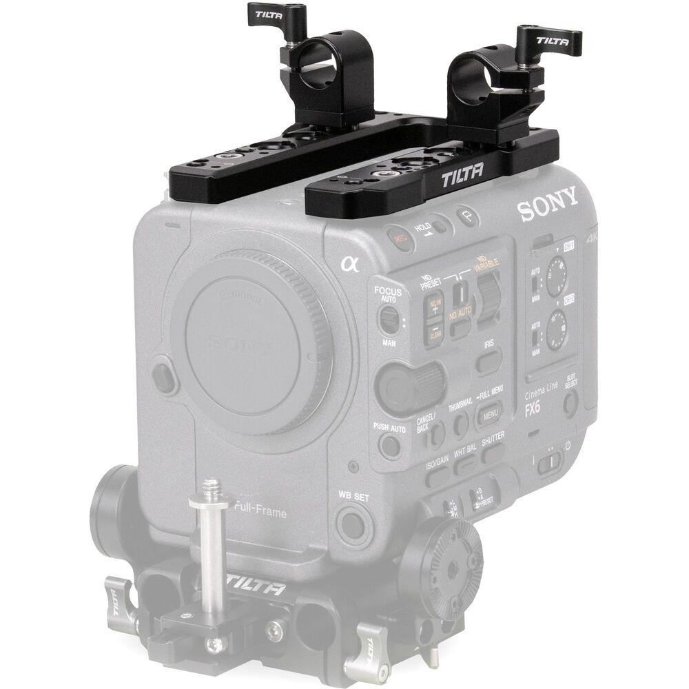 Add support and accessory mounting to your Sony FX6 with this Tilta Multi-Functional Top Plate for Sony FX6. This lightweight yet durable top plate is machined from aluminum and stainless steel to fit snugly around the original FX6 top handle, and it provides support to Tilta's own top handle for the FX6. Multiple 1/4"-20 and 3/8"-16 accessory mounting holes with anti-twist divots are incorporated into the top plate for mounting accessories to your camera