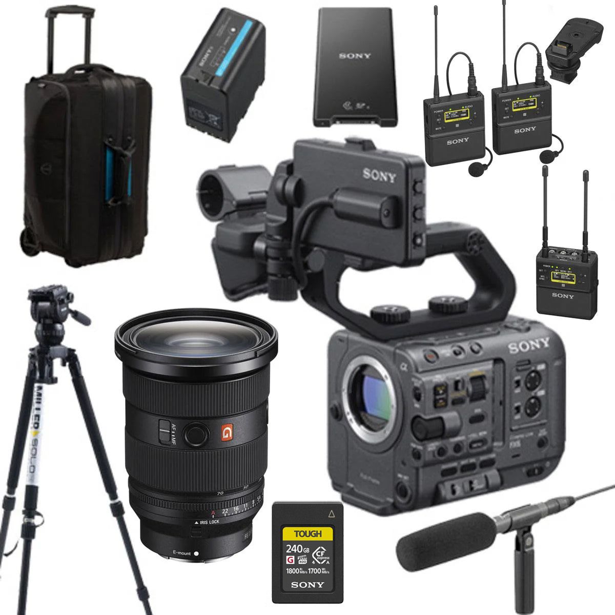 此外,该套装还包含 Miller CompassX CX2 液压云台和 Solo 75 两级合金三脚架,为您的摄像机提供坚固可靠的支撑系统。索尼 ECM673 紧凑型枪式麦克风非常适合在片场录制高品质音频,而 Tenba Cineluxe Roller 24 包则可轻松携带和保护您的设备。总而言之,对于任何想要制作专业品质视频内容的人来说,索尼 FX6 全画幅电影摄影机内容创作套装都是一项绝佳的投资。