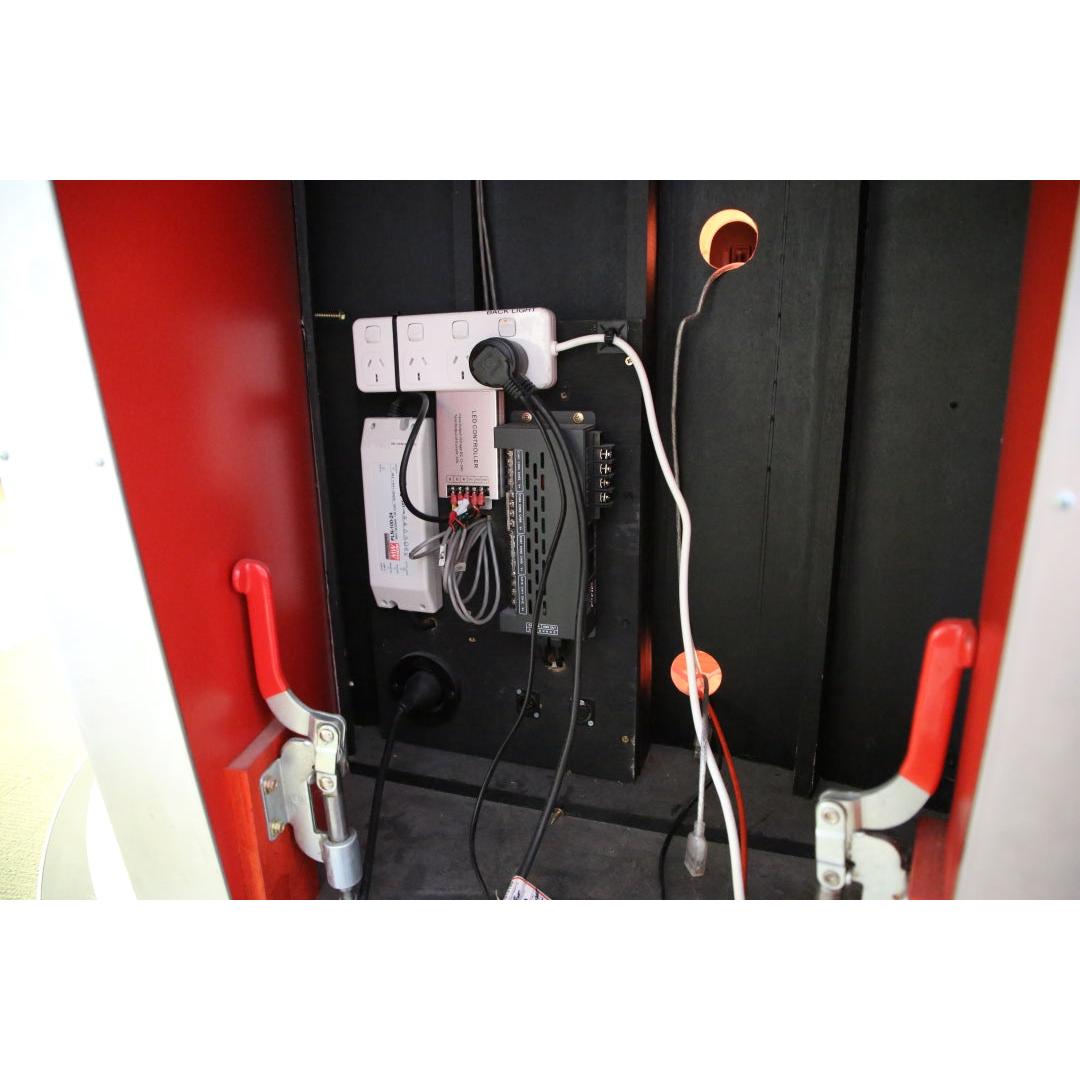Presenter’s desk with a cleanly integrated 32" front-facing screen, ideal for dynamic content and branding. Built-in controllable lighting allows you to customise the look to suit any production or environment. Due to the size of the unit, local pick up only from our Burwood showroom (Melbourne).